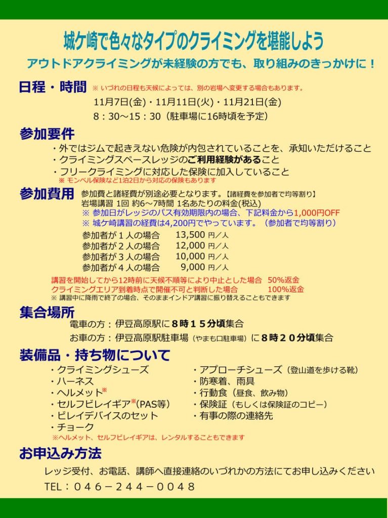 お知らせ2025.09.23Ledgeアウトドア クライミングスクール 10月の募集 その2