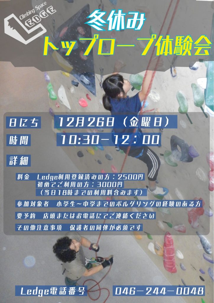 お知らせ2025.12.13冬休み Kidsトップロープ体験会のお知らせ