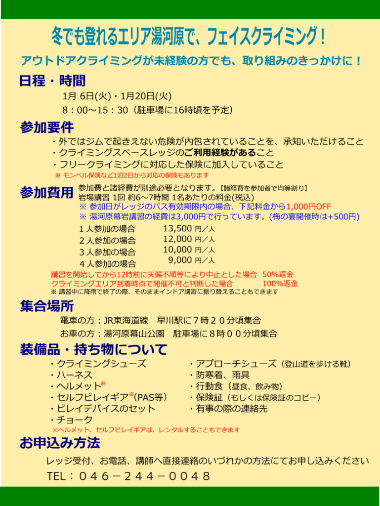 お知らせ2025.12.20Ledgeアウトドア クライミングスクール 1月の募集
